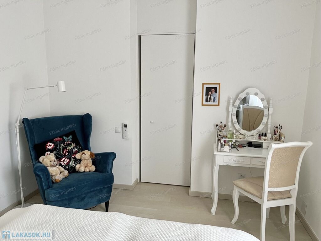 A praktikus elrendezésnek köszönhetően külön gardróbhelyiség is kialakításra került, ahol a mosógép is megtalálható. A komfortot hűtő-fűtő klíma biztosítja, a rezsiköltség pedig rendkívül alacsony, így gazdaságos