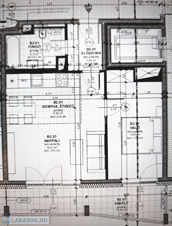 A hirdetésben szereplő lakás 48,11 m²-es, 2 szobás,2. emeleti, és tartozik hozzá egy 12,92 m²-es erkély is.