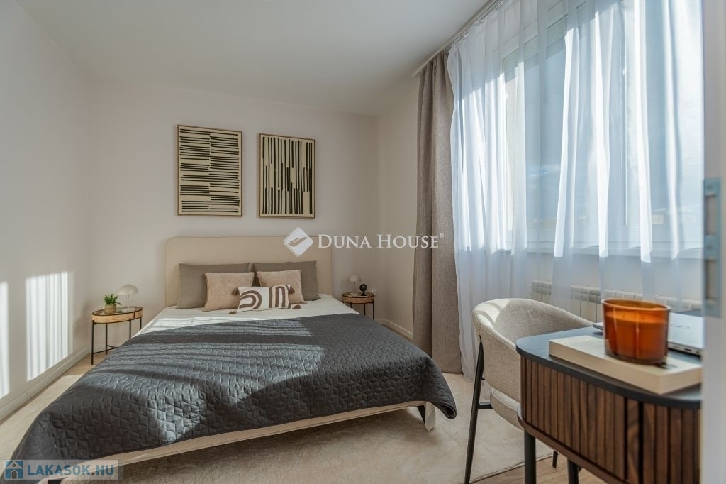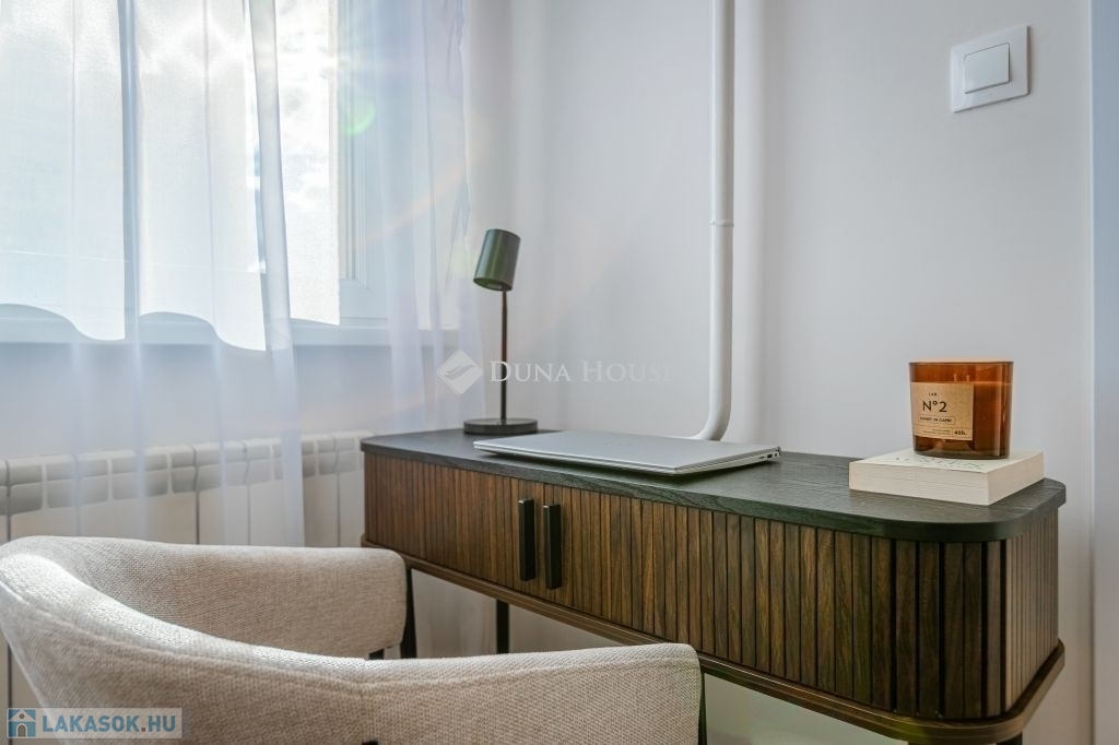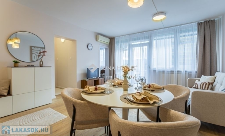 Az 46 m²-es, déli fekvésű, 2 szoba + 6m2 erkélyes ingatlan rendkívül világos és napsütötte. Az erkélyről kellemes, zöld területre nyílik a kilátás, ami mentesen az utca zajától. A lakás a közelmúltban teljes körű, magas színvonalú felújításon esett át. A villanyhálózat a mai elvárásoknak is megfelelő lett, a beltéri ajtók, minden burkolat és szaniterek cseréje is megtörtént. Az otthon jó minőségű, redőnyös, műanyag ablakokkal rendelkezik, klímával felszerelt. ű