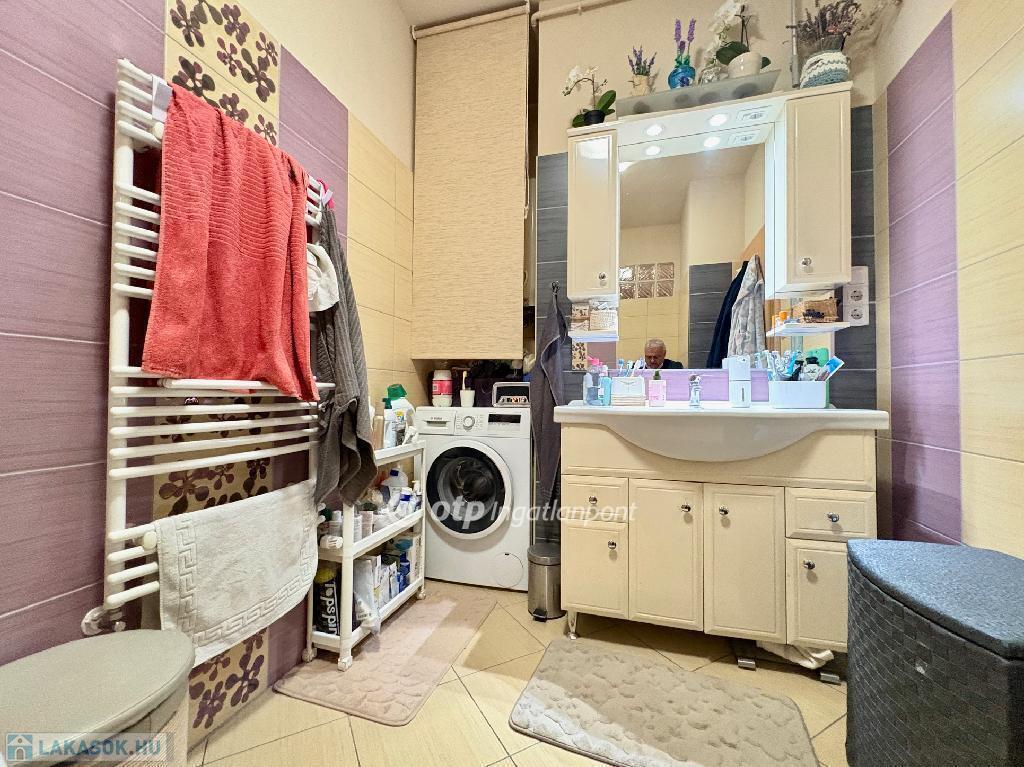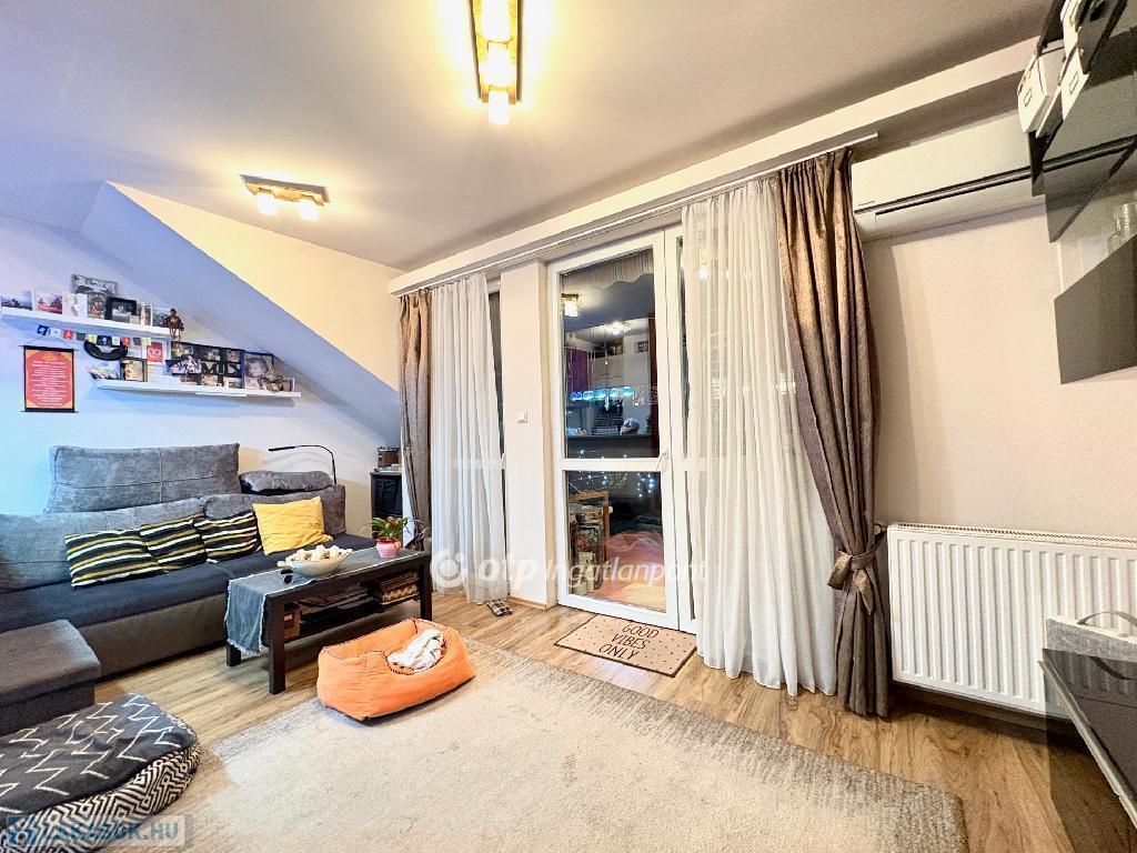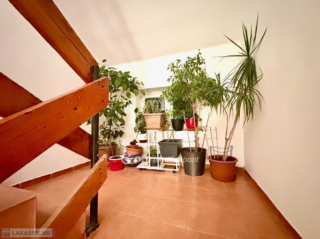 A lakás 14 évvel ezelőtt, emeletráépítés következtében került kialakításra. A lakás újszerű, az elektromos-, víz-és gázvezetékeket teljesen újak. Új kondenzációs gázkazán és légkondicionáló berendezés került beépítésre, aminek köszönhetően egész évben biztosított a kellemes hőérzet. A nyílászárók műanyagok. Az amerikai konyhás nappali és a fürdőszoba kellemes, modern hangulatú.