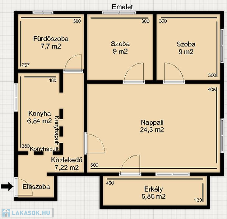 A lakáshoz tartozik még egy 10 m2-es pince, mely a lépcsőházból közelíthető meg.