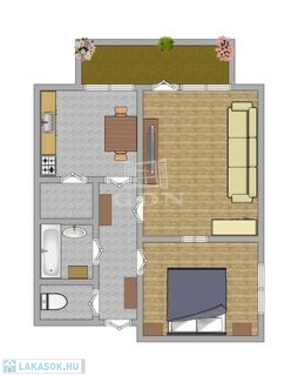 Ez a téglaépítésű ingatlan az 1. emeleten található és egy 7 négyzetméteres erkéllyel is rendelkezik.