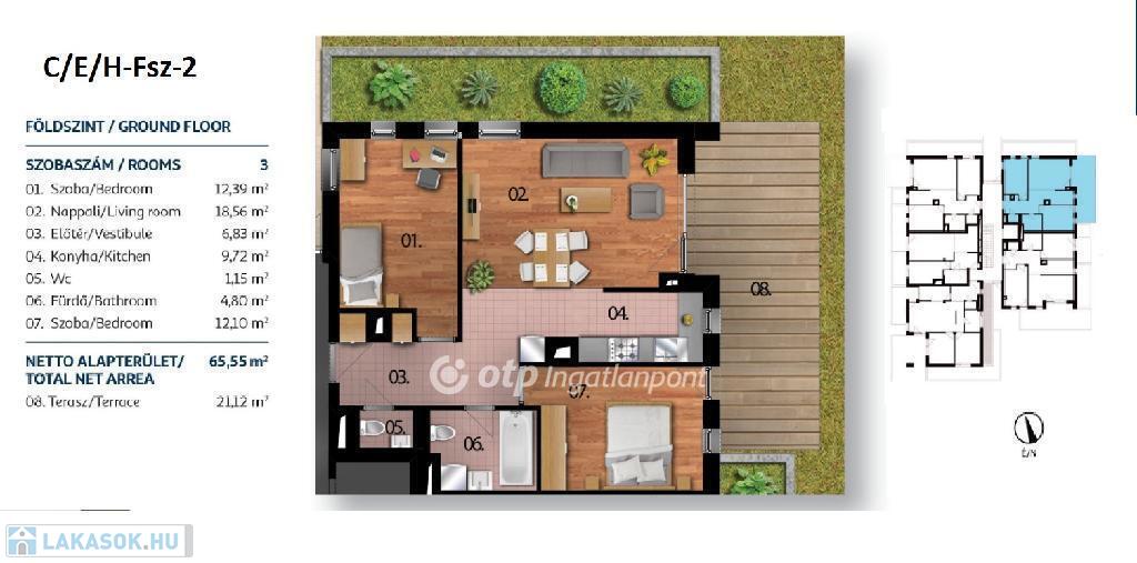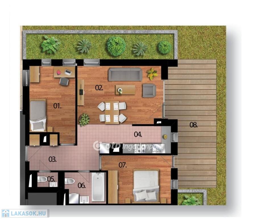 Lakások mérete: 49 nm-es, 2 szobás lakástól a 150 nm-es, 5 szobás és a tetőteraszos, exkluzív penthouseig.