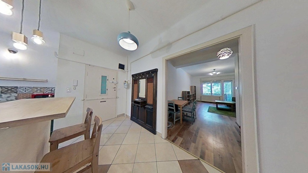 A lakáshoz tartozik a pincében 3,5 nm nagyságú zárható tároló, az épület belső udvarán közös használatban levő kertet is használhatjuk.