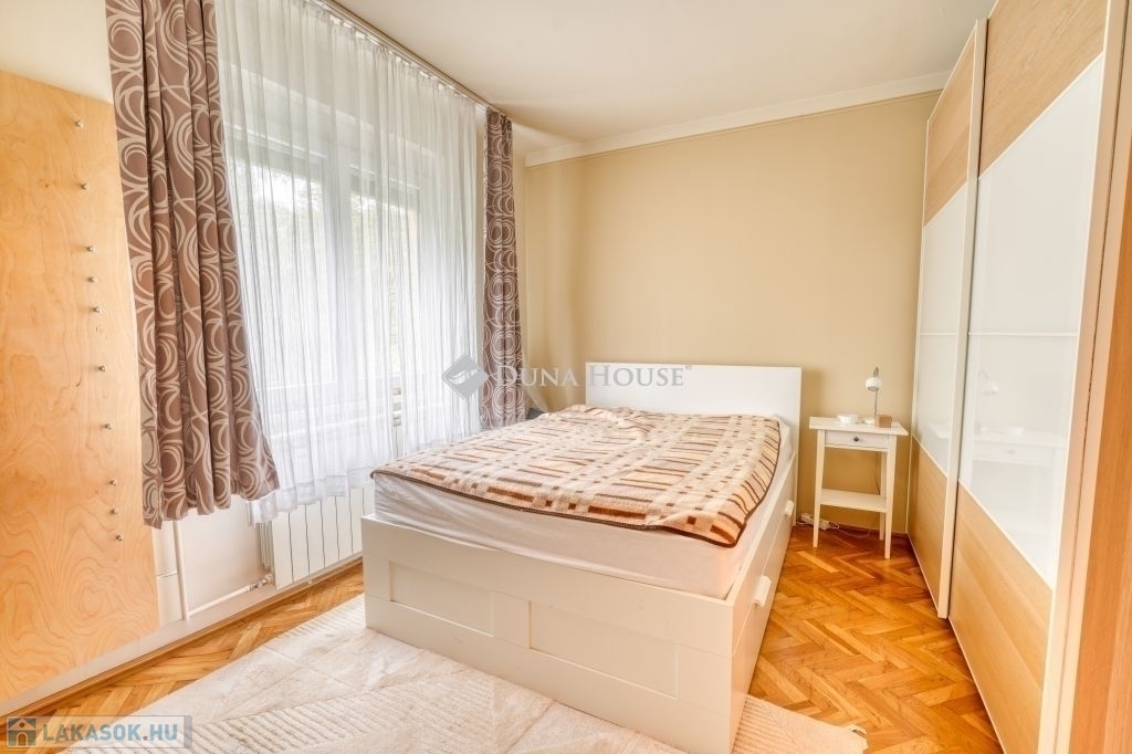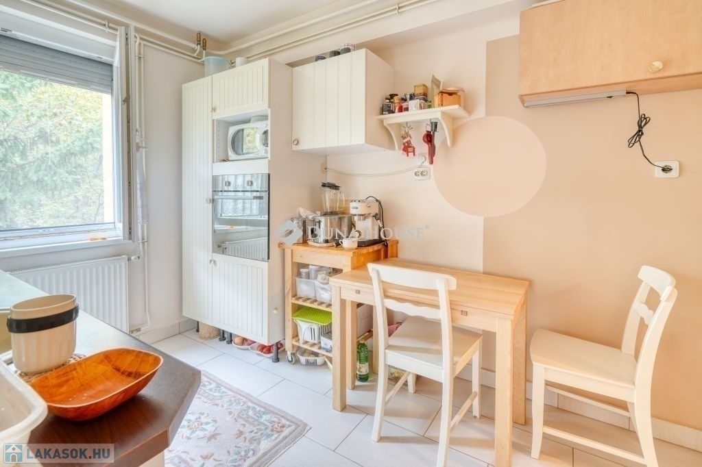 Eladó loggiás felújított tégla lakás a 12. kerületben  ősfás környezetbenA XII. kerület közkedvelt, csendes részén egy 3. emeleti,  lodzsás lakás most önre vár.53m2-es csendes, rendezett lakás eladó tehermentesen. Ideális otthon egy pár részére, kisebb családnak vagy egyedülállóknak. Frissítő levegőjű fás környezetben fogyaszthatja el reggeli kávéját.A lakás jellemzői:Belmagasság 2,6 m2Elosztás:ElőtérKonyha és étkező egybenKamraFürdőHálóNappaliKompakt teljes körű műszaki és esztétikai felújítás történt 2009-ben.Modern gázcirkó biztosítja a fűtést, egyedi mérőórákkal.Új hideg- és melegburkolatok. Műanyag nyílászárók, szúnyogháló és klíma gondoskodik a lakás gondtalan használatáról.Körbejárható elrendezése kellemes.Könnyedén és gyorsan kiadható.A társasház:Tégla építésű, 16 lakásos rendezett társasházTiszta, zárt lépcsőházElhelyezkedés, infrastruktúra:Közelben  boltok, óvoda, iskola, szolgáltatásokJó közlekedés :22, 22A, 222, 291-es buszok, 922, 922B éjszakai buszok megállói a közelbenFigyelemfelkeltő lehetőség mindazoknak aki egy kiváló adottságú, azonnal költözhető lakást keres a XII. kerület természetközeli részén. Keressen bizalommal, most!