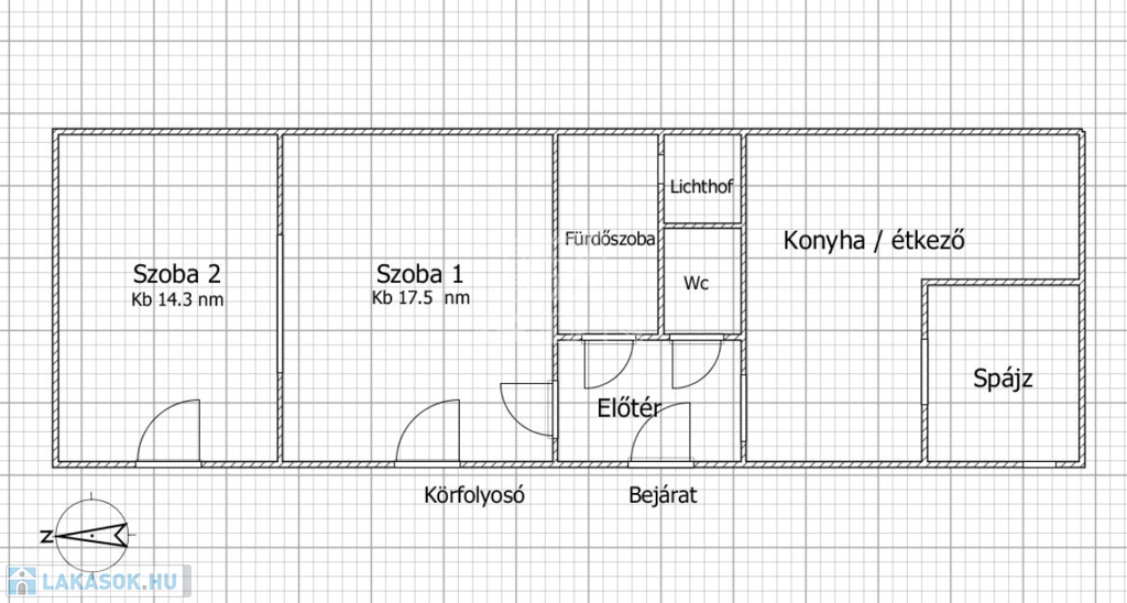 Az ingatlan praktikus elrendezésű: két szobával, kényelmes méretű étkezős konyhával, valamint kamrával rendelkezik. A fürdőszoba és a WC külön helyiségben kapott helyet, ami tovább növeli a lakás komfortját.