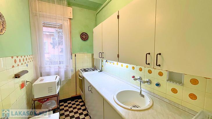 Virányos egyirányú, csendes mellékutcájában, csendes, hátsó, gondozott kertre néző, erkélyes lakás eladó.