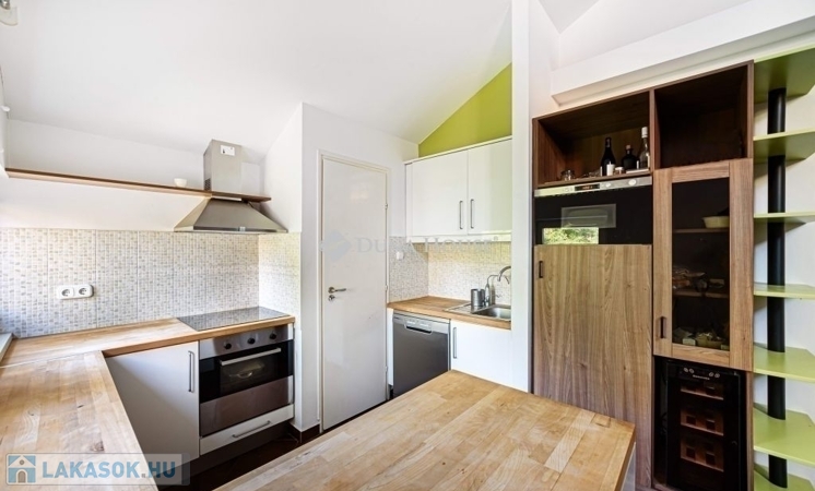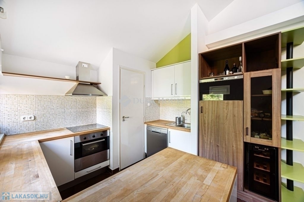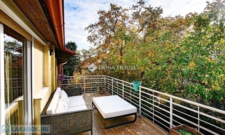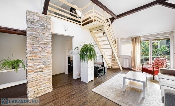 Napsütötte, tágas, teraszos otthon - KissvábhegyenBudapest egyik legkedveltebb, zöldövezeti részén, a XII. kerület Kissvábhegyén, az Ügyész utcában kínálunk megvételre egy különleges hangulatú, 80 m²-es, belső kétszintes lakást, 12 m²-es, napfényben fürdőző, kertre néző saját terasszal.A lakás egy elegáns, háromlakásos villaépület legfelső szintjén helyezkedik el, így teljes intimitást és nyugalmat biztosít tulajdonosának.A lakás különlegességei:- Lélegzetelállító terek és fényár a 4 méteres belmagasság, valamint a rusztikus, látszó gerendás nappali egyedi karaktert kölcsönöz az otthonnak.- Kivételes tárolókapacitás ízlésesen beépített szekrények és tágas gardrób biztosítanak rendszerezett életteret.- Csendes, zöld környezet, mégis kiváló közlekedés a belváros mindössze percek alatt elérhető. (Busz: 21, 39, 102, 210, 212 Villamos: 17, 59, 61 M2 metró: 10 perc séta)A lakás elrendezése:- elegáns előszoba- konyha-étkező + kamra- tágas nappali rusztikus látszógerendákkal, közvetlen teraszkapcsolattal- kényelmes méretű hálószoba, szintén kijárattal a teraszra- stílusos fürdőszoba zuhanykabinnal és WC-el- a galériaszinten egy nyitott, világos dolgozó- vagy vendégszoba, beépített gardrób és extra tárolófelületekA lakás a villa felső szintjén, kb. másfél emelet magasságban található. A hozzá vezető zárható, kizárólagos használatú lépcsőház további biztonságot és extra tárolási lehetőséget kínál.A lakás teljes körű felújításon esett át, és azóta is gondosan karbantartott.Cirkófűtés és klímaberendezés gondoskodik az évszakokhoz illő kényelemről.Külső adottságok:A villa egy 1070 m²-es, ősfás, parkosított telken helyezkedik el. A lakáshoz saját kerthasználat tartozik, ahol homokozó-játszórész, grillterasz, pihenőkert vagy veteményes is kialakítható.A kényelmet saját udvari gépkocsibeálló és külön külső tároló is szolgálja, melyek árát a vételár tartalmazza!!!Ez az ingatlan tökéletes választás azoknak, akik egy napfényes, hangulatos, otthonos lakást keresnek a XII. kerület egyik legjobb részén, ahol a zöld környezet és a városi kényelem találkozik.Ha Ön is egy egyedi atmoszférájú, magas minőségű lakásra vágyik Budapest egyik legkívánatosabb részén, keressen bizalommal a részletekért és a megtekintés egyeztetéséhez!
