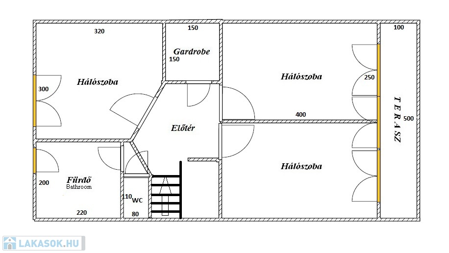 Mindenhol fa nyílászáró van, 2 rétegűek, a nappali tolóajtója pedig 3 rétegű üvegből készült. Mindegyik szúnyoghálós, es elektromos redőnyökkel ellátott.