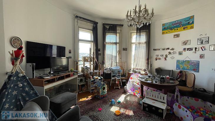 Krisztinavárosban, karbantartott társasházban, magas emeleti, napos, kelet-i és dél-i fekvésű, nagypolgári lakás.