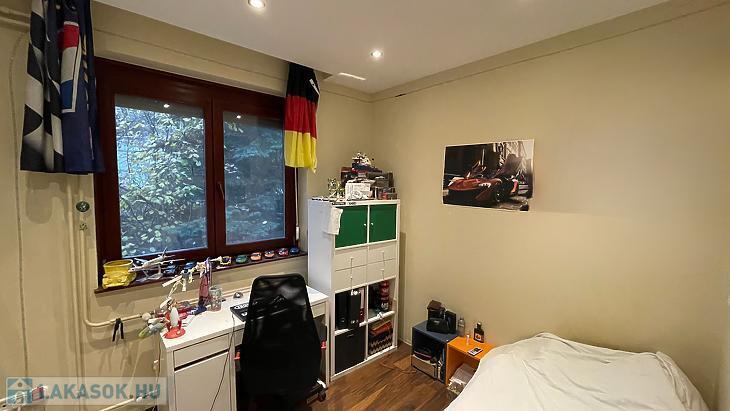Istenhegyen, csendes mellékutcában, nagyméretű telken fekvő, kevés lakásos, jó állapotú társasházban, emeleti, napos, egyedi fűtéses, jó állapotú lakás.