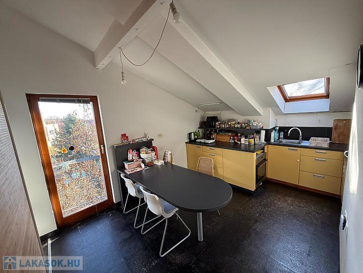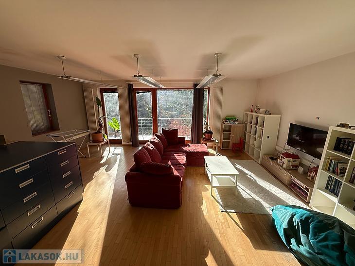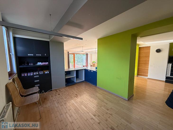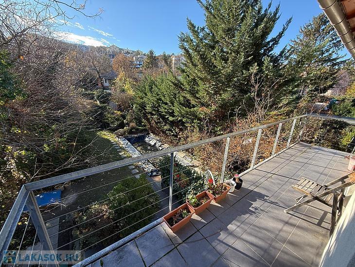 Eladásra kínálunk egy csendes, jó állapotú, nettó 159 nm-es + 15 nm-es teraszos, belső kétszintes, világos, panorámás lakást Németvölgy frekventált részén, a Fürj utcában.