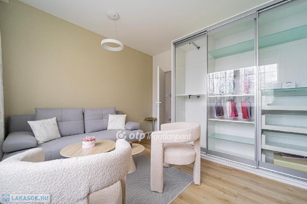 A lakás részét képezi a teljesen FELSZERELT , beépített konyhabútor, valamint az egyedi gyártású BEÉPÍTETT BÚTOROK, gardróbok, így az ingatlan azonnal költözhető, kompromisszumok nélkül.