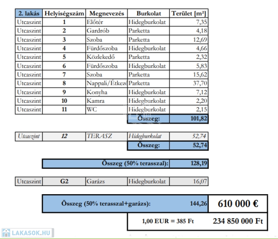A bruttó 128 m2-es lakáshoz kapcsolódó további helyiségek: