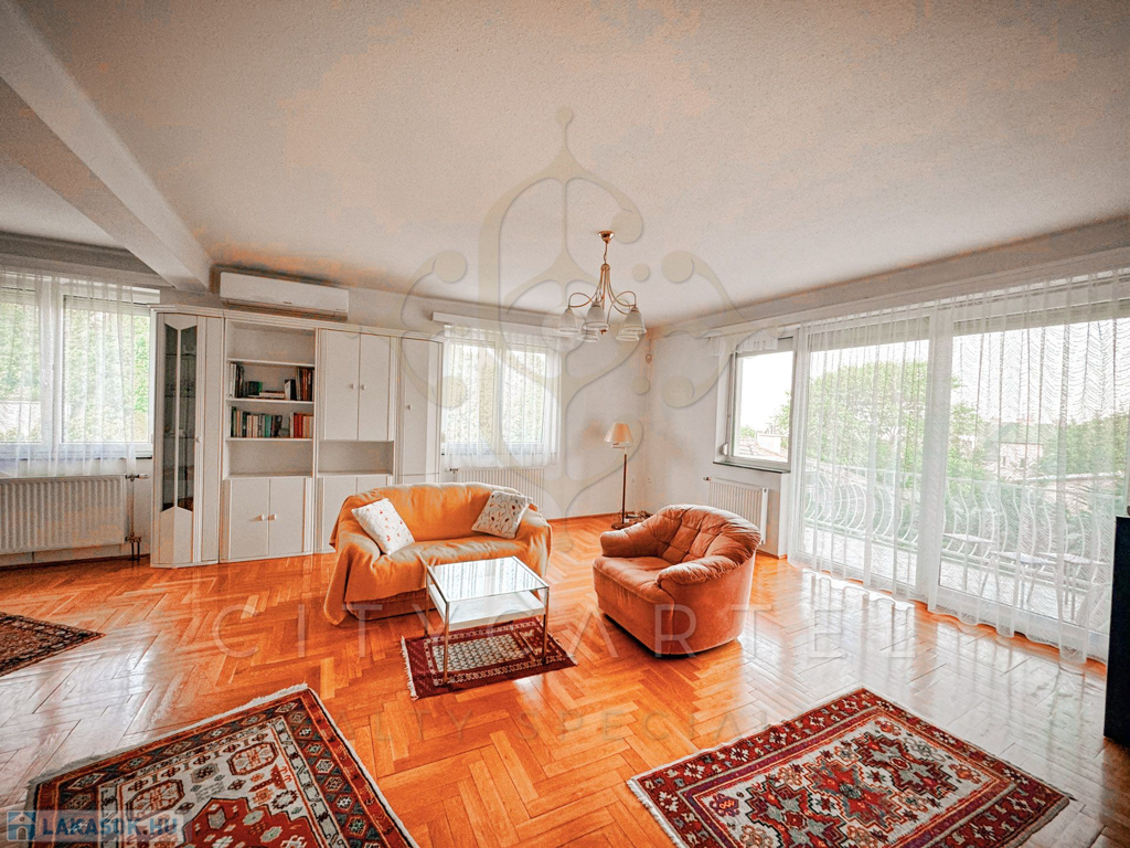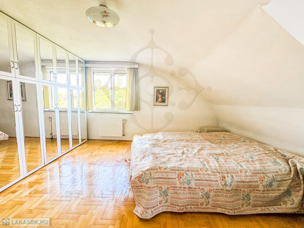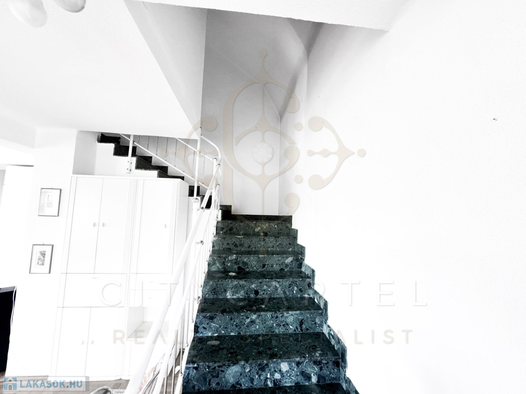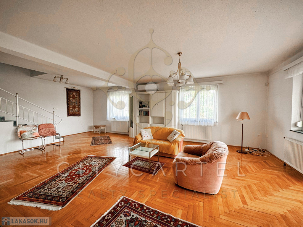 A XII. kerület egyik legzöldebb, legcsendesebb részén, Mártonhegyen eladó egy 163 nm-es, belső kétszintes, napfényes tégla lakás, amely ideális választás családoknak vagy azoknak, akik nyugalomra, térre és madárcsicsergésre vágynak, de nem mondanának le a város közelségéről sem.