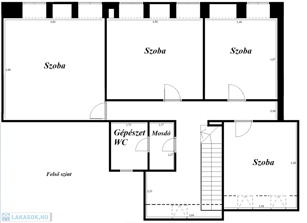 A lakás jelenleg is remek beosztású, de tovább is alakítható akár két külön lakássá is. A képek mellett megtalálható a lakás alaprajza és nemsokára átalakítási javaslatok is elérhetőek lesznek.
