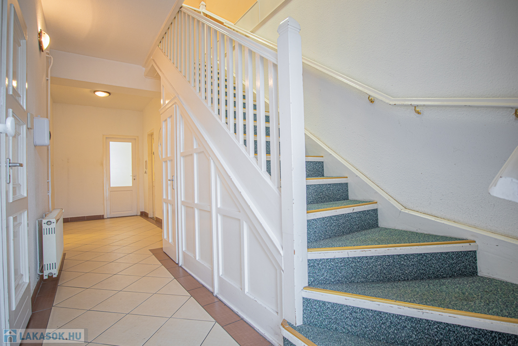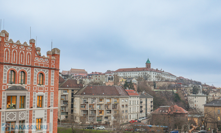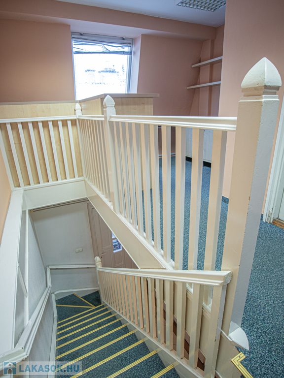 A lakás kétfrontos, az ablakok a felújított Postapalota felé illetve a belső udvar felé is néznek.
