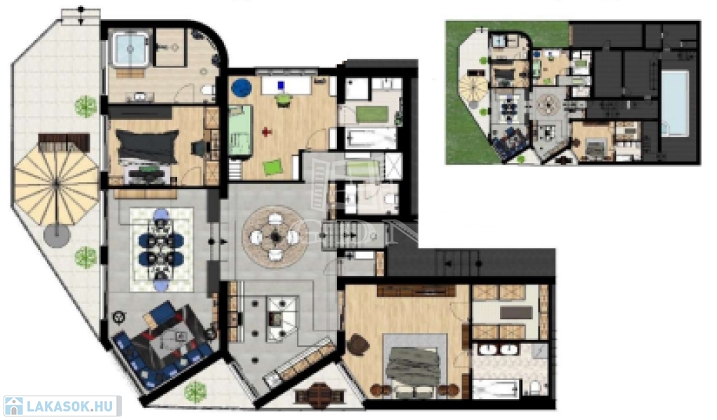 FIGYELEM, az épületben további 2 lakás lett kialakítva, melyek külön emeleten helyezkednek el.