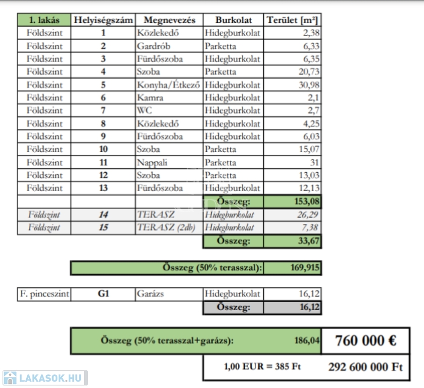 - kertkapcsolatos nagyméretű terasz: 35 m2,