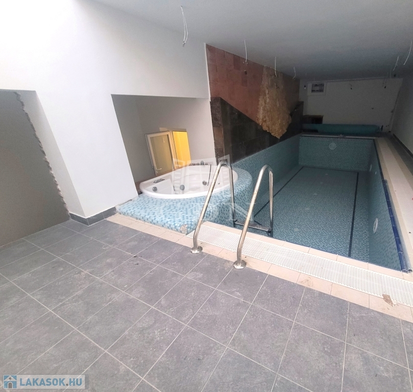 Fontos megemlíteni, hogy a kertkapcsolatos ingatlan hálószobai gardrób válaszfalának átalakításával akár közvetlen, privát kapcsolatot lehet biztosítani a wellness részhez!
