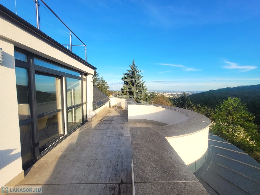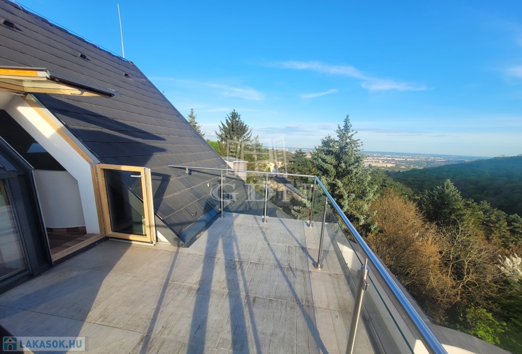 A luxus duplex (BELSŐ KÉTSZINTES + SZINTENKÉNT 1-1 TERASZ) élettér a Budai oldal kiemelt részén a Farkasvölgy-Csillebérc városrészek ölelésében a tájvédelmi terület mellett, csendes hegyvidéki környezetben helyezkedik el! A lakáshoz tartozó hatalmas méretű teraszról csodálatos panoráma nyílik a városra, valamint a Frank hegyre. A lakóhelyet körül ölelő végtelen nyugalom és csend egyedülálló élményt biztosít!