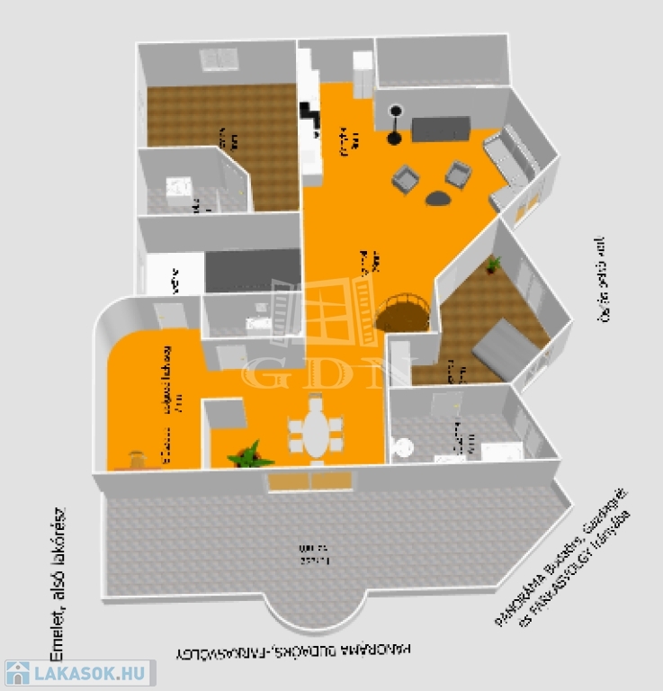 - Teraszok: 54 m2,