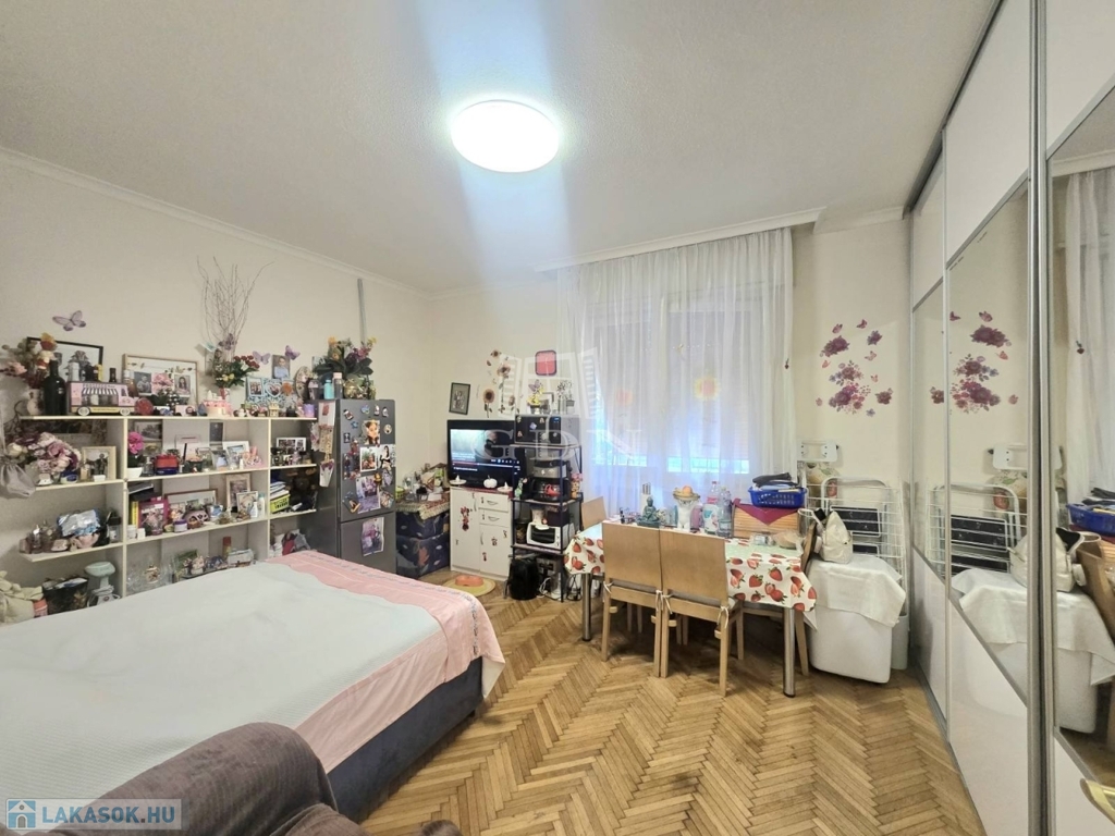 A nappali-háló tágas és világos, utcai kilátással, a házközponti fűtés pedig lapradiátorokon keresztül biztosítja a kellemes meleget a téli hónapokban.