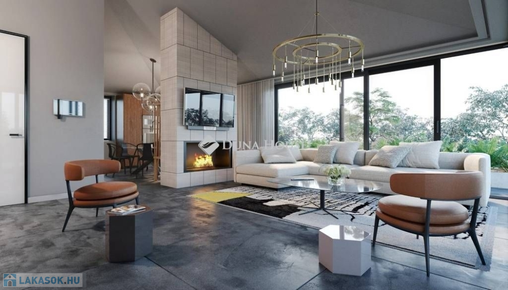 Megújuló energia, fűtő-hűtő rendszer, felső kategóriás anyaghasználat, nagy teraszok, élhető zöld terület.