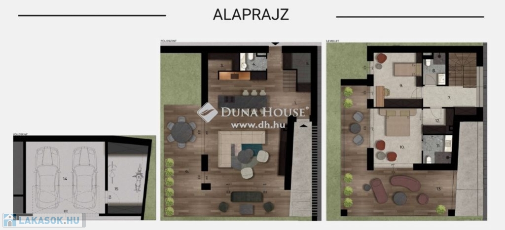 B1 lakás, földszint: lakótér 123 m2 +nyitott terasz 88 m2 + saját kert: 253 m2