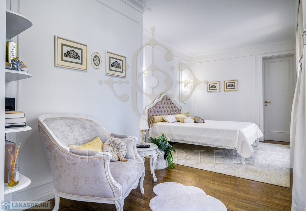 A lakás minden részletében a klasszikus francia elegancia és a modern luxus harmonikus ötvözete köszön vissza. A kifinomult belsőépítészeti tervezés a legmagasabb színvonalon valósult meg, olyan gondosan megválogatott anyagokkal és kiegészítőkkel, amelyek exkluzivitást és időtlen stílust sugároznak.