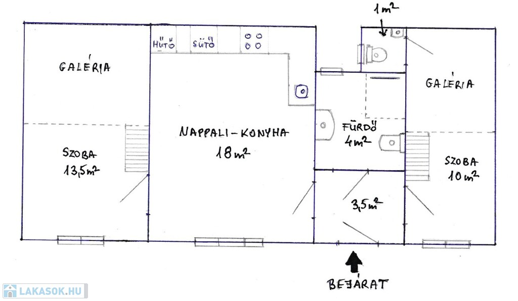 A 3,8 m -es belmagasságnak köszönhetően két galéria is kialakításra került,