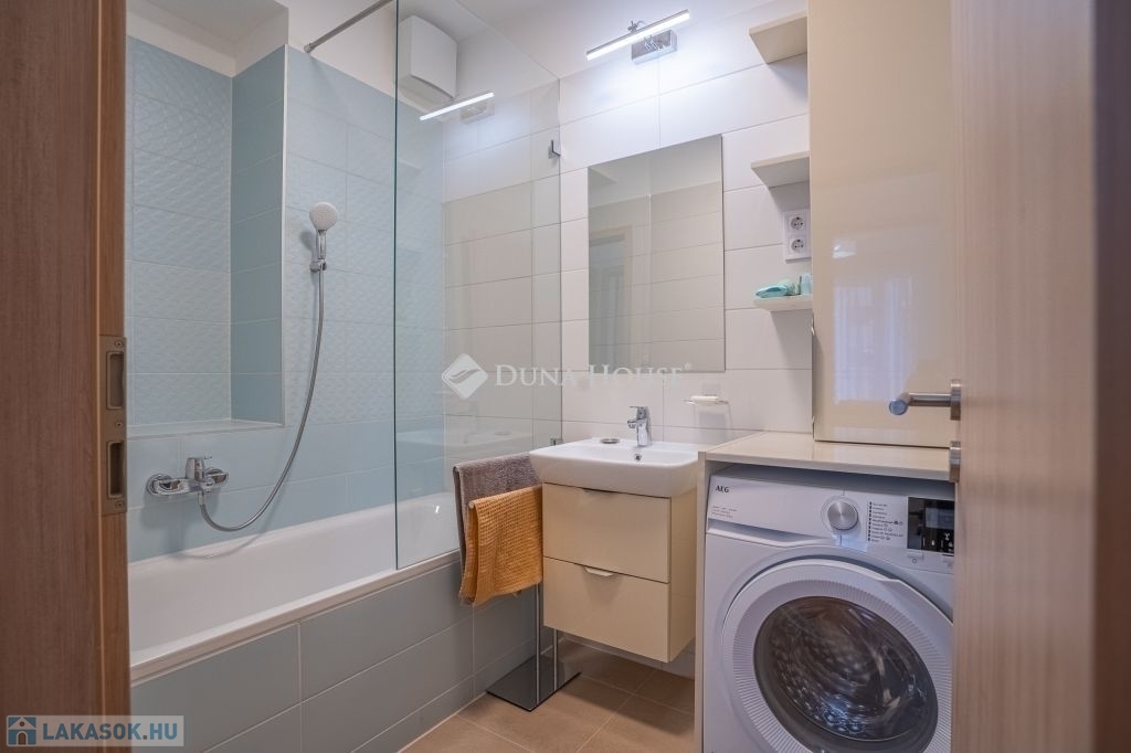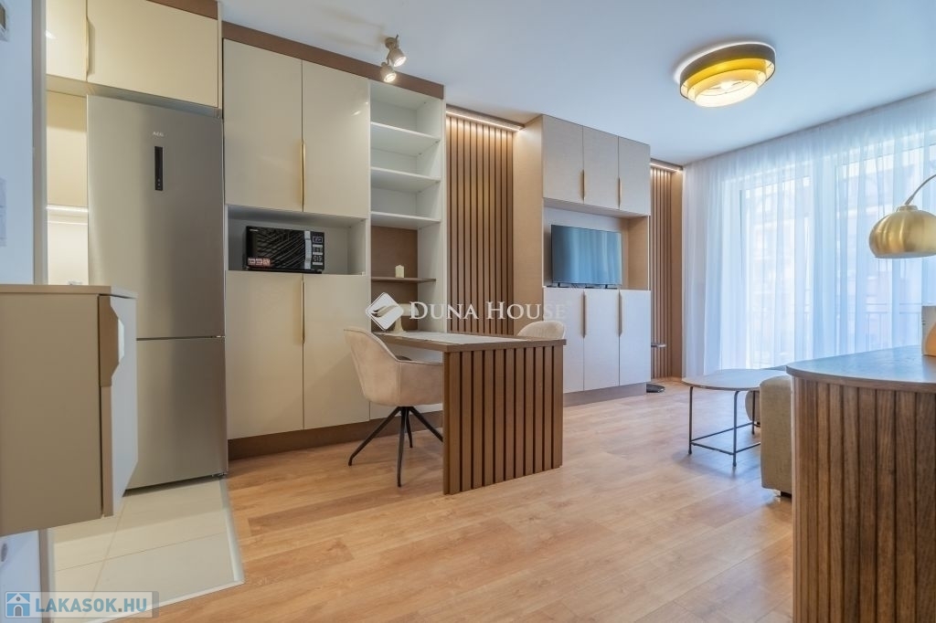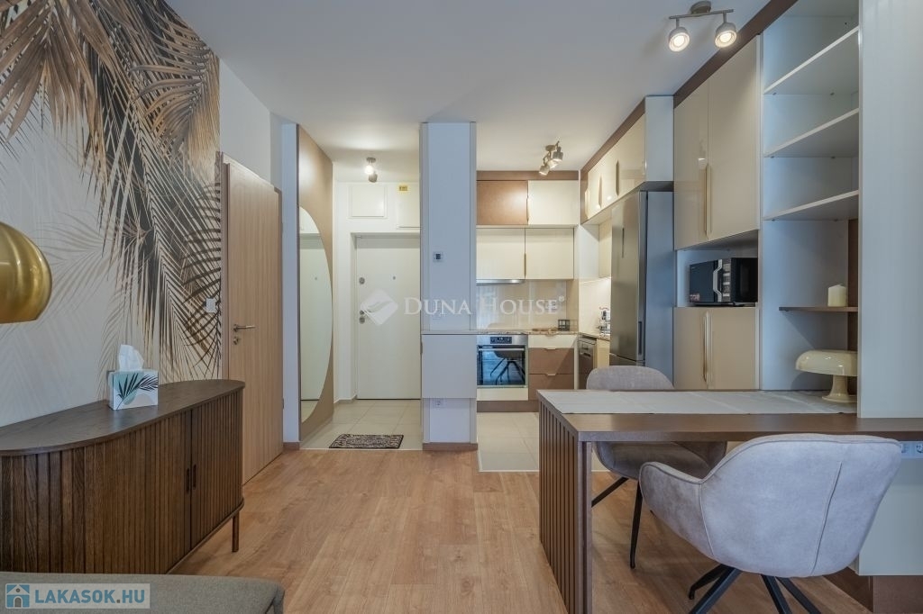West Side Gardenben – stílusos, azonnal költözhető lakás a XIII. kerület szívében!A XIII. kerület legújabb lakóparkjában, a Big George által fejlesztett West Side Gardenben kínálok eladásra egy 1. emeleti, 45 m²-es, igényesen kialakított, ízléses otthont.A belső terek megkomponálását profi tervező végezte, ahol a meleg bézs árnyalatok, a minőségi burkolatok és a harmonikus anyaghasználat gondoskodnak az időtálló, elegáns hangulatról. Minden részlet a kényelmet és az esztétikát szolgálja.Főbb jellemzők:Világos, amerikai konyhás nappali, gépesített konyhával, gránit munkalappalÖsszehangolt belsőépítészeti koncepció, modern bútorzattalOkosotthon vezérlés, mennyezeti hűtés-fűtésHő- és hangszigetelt nyílászárók, elektromos redőnyök, szúnyoghálóTágas terasz, amely a csendes, parkosított belső kertre nézNagyobb méretű teremgarázs beálló és tároló a vételáron felül kötelezően megvásárolandó!A West Side Garden kiváló elhelyezkedéssel bír: a Váci út, Duna Pláza, metró, irodaházak és rekreációs lehetőségek egyaránt pár perces sétával elérhetők, miközben a zöld, belső udvar nyugodt életteret biztosít.Ideális választás azok számára, akik egy letisztult, modern otthonban képzelik el a mindennapjaikat – kompromisszumok nélkül.