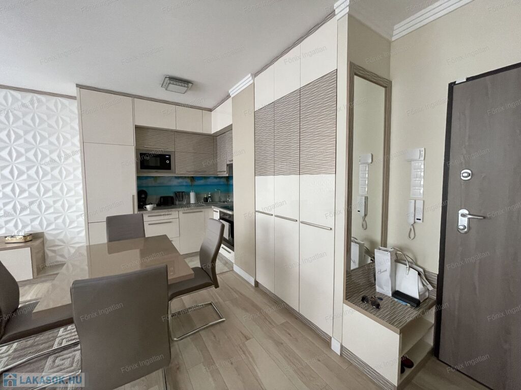 A vételár a gépesített konyhát (itt a beépített hűtőszekrényt) és fürdőszoba felszereléseket (Bosh mosó-szárító gépet) is tartalmazza!