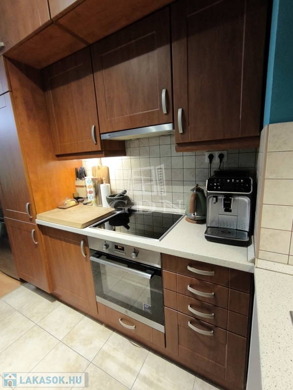 Gépesített konyha beépített sütővel és mosogatógéppel.