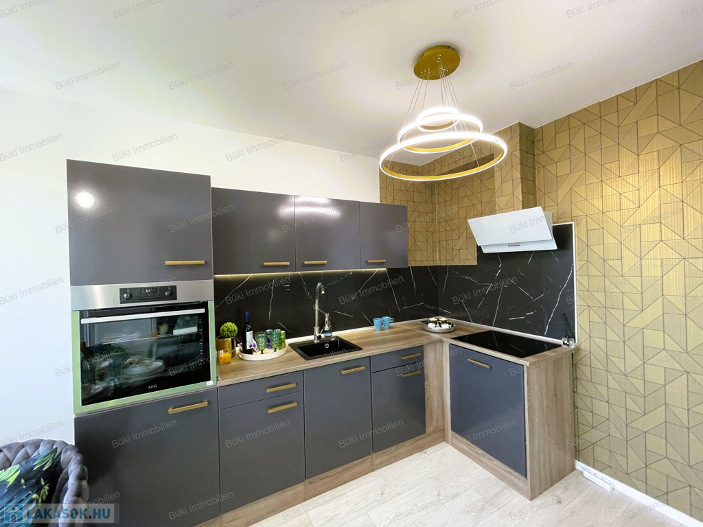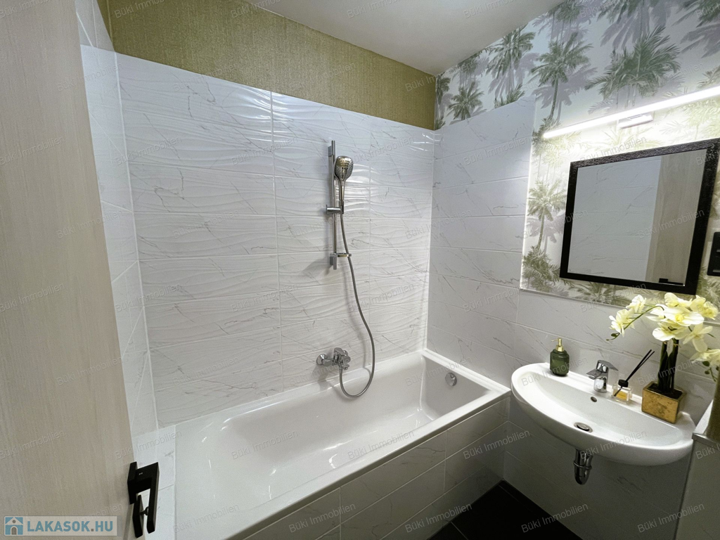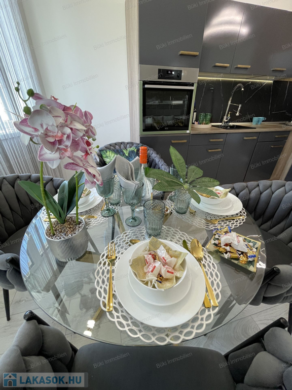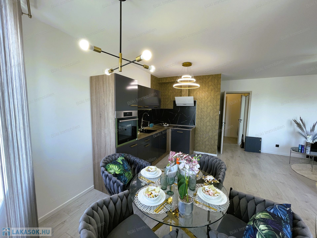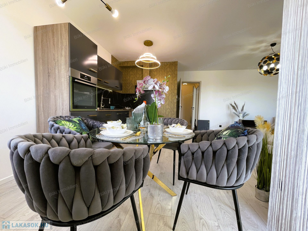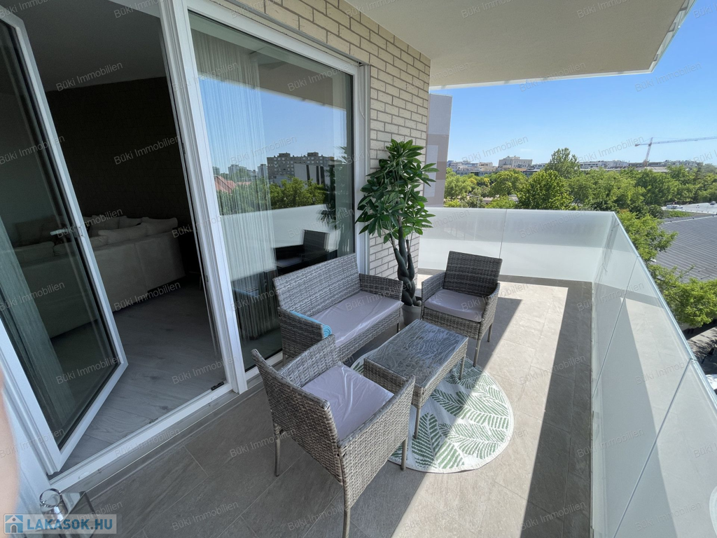 Itt van minden, ami csak egy igényes embernek kellhet a mindennapokhoz. Belsőépítész által tervezve, megalkotva, a legapróbb részletekre is ügyelve. Színvilágával elkápráztat, miközben az erkélyől a várost lehet csodálni, több szögből is. A bútorok egyedien lettek összeválogatva, a hideg és meleg színárnyalatokkal játszva, egy valódi alkotás. Ide már csak egy kulcsot, kistáskát kell hozni, és kezdőthet is egy új életszínvonal. Bárki, akit ide áthív az ember kávézni, borkóstolóra, vagy Netflixezni, biztosan elismerőleg fog szólni. A hatalmas erkélyen tavasztól mehet a teázás croissanttal, kis narancsdzsemmel és egy kis friss grapefruittal. Az erkély sarkon van, így a szívonalas zavartalan esti elmélkedés, esetleg a következő Nobel-díjas találmány megalkotása teljesen lehetséges, csak is a madarak lesznek jelen, mint hangulatfokozó természetes nyugatók. Wc és fürdő külön, így ha nagyobb társaság jönne össze, a házigazda zavartalanul mosakodhat, ha esetlegesen foglalt a wc.