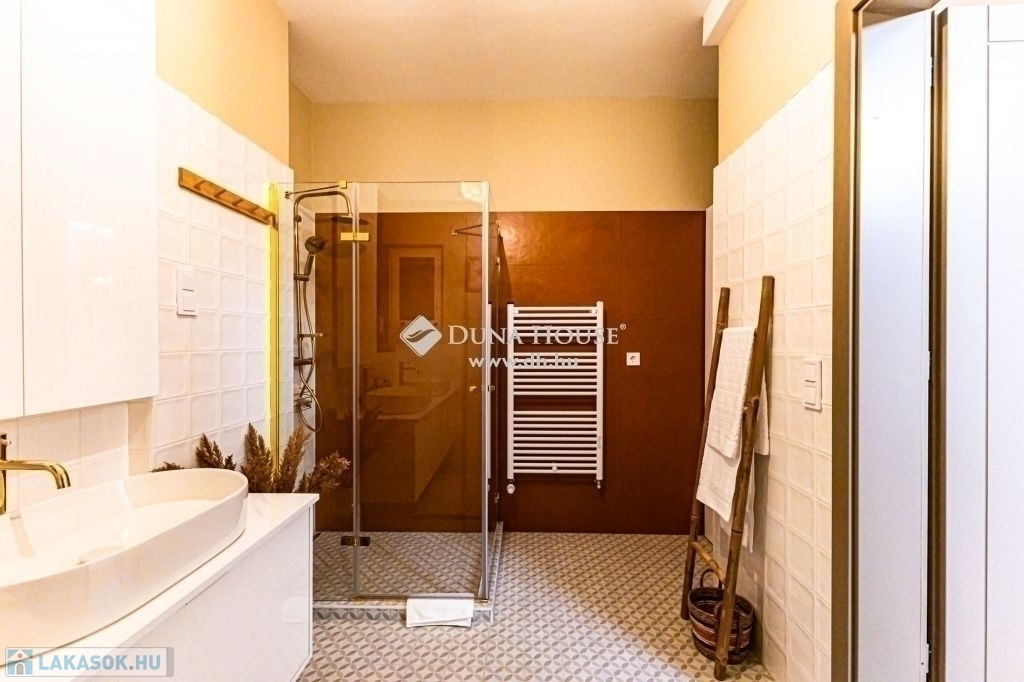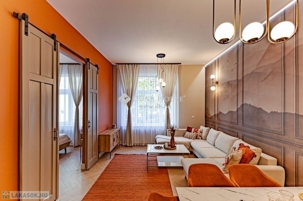 XIII. kerület Újlipótvárosi részén, a pezsgő Belváros szomszédságában pár perc sétára Westendtől, eladó egy nagypolgári lakás. A lakás tulajdoni lap szerint 92 nm melyet két lakássá bontottak, ennek eredmény keppen, egy közel 75 nm, és egy 18 nm alapterületű lakás került kialakításra. Jelen hirdetésben szereplő 75 nm lakrészt kínáljuk eladásra.A lakást, a mostani tulajdonos az alapokig visszabontotta, és minden elemében megújította. Ennek köszönhetően, két hálószoba és tágas nappali került kialakításra.A terekre jellemző, hogy a mind a fő mind a második hálószoba is közel 15 nm; a fő hálószobából leválasztottak egy Gardrobe helyiséget. A nappali tágas világos, magában foglalja az étkezőt is, a konyha a tágas közlekedő részen kapott helyet, ahonnan a Fürdő és az udvari tájolású hálószoba is megközelíthető.A felújítás során magas minőségű anyagok kerültek beépítésre, mind a szaniterek, mind a nyílászárók tükrözik azt az igényességet, amelyet a Home Staging során kiválasztott bútorok és berendezési tárgyak egészítenek ki és teszik harmonikus otthonná. A lakás teljes bútorzattal, és berendezési tárgyakkal együtt megvásárolható.A házban a rövidtávú kiadást mostani tudásunk szerint a ház nem engedélyezi, a kisebbik lakrész jelen pillanatban is ki van adva hosszú távra. Igény esetén az is megvásárolható, külön megállapodás alapján.Jöjjön el nézze meg.