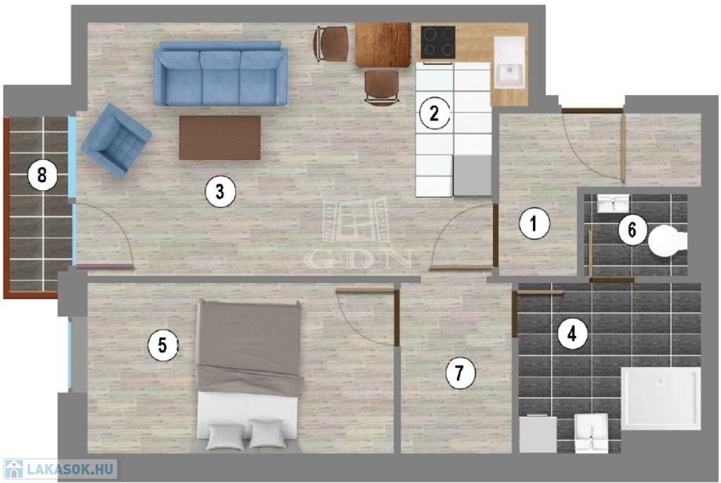 • 4. em.: 2 db lakás