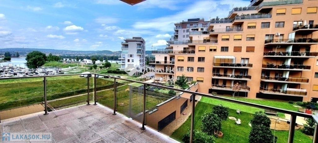 Az épület közvetlen a Duna parton van és így a teraszról lélegzet elállító panoráma nyílik a Dunára és egy gyönyörűen karbantartott parkra.