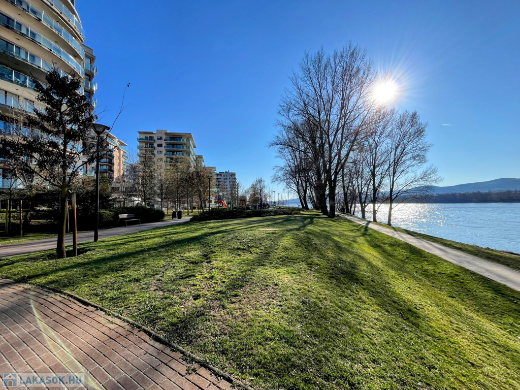 A lakás csendes, a Marina part többi épületei mind mögötte van, így a lakás és a Duna között mindössze a nagyjából 20 méter széles sétány van. Itt modern és biztonságos játszóterek, nyugalmas parkok találhatóak, de nincs messze a Foka öböl sem.