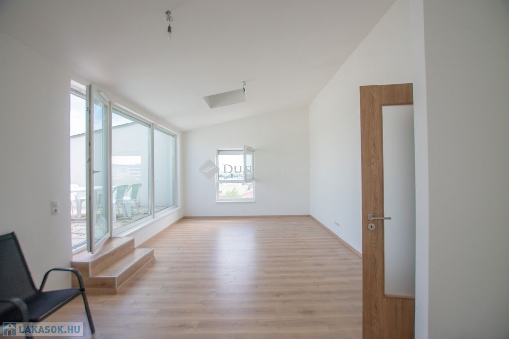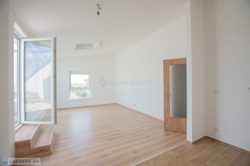 legfelső emeleti lakás 13. kerület Vizafogón, a Duna-part közvetlen közelében. Az ingatlan 71 m²-es, nappali + amerikai konyhás elrendezésű, két külön nyíló szobával rendelkezik. A lakás legnagyobb különlegessége a 36 m²-es, két szintre tagolt, részben térkövezett, részben füvesített terasz, amely ideális pihenésre, vendégfogadásra vagy akár kerti sütögetésekhez. A teraszról kilátás nyílik a Dunára, ami még különlegesebbé teszi az ingatlant. Az otthon világos, tágas, egyedi elrendezésű, nem tipikus alaprajzú lakás, ami valódi ritkaságnak számít az új építésű kínálatban. A lakáshoz két kerti tároló is tartozik, illetve néhány kisebb befejezés az új tulajdonos ízlésére van bízva például a konyhabútor beépítése is még hátravan, így az teljes mértékben személyre szabható. Az ingatlanhoz teremgarázs beállóhely is vásárolható opcionálisan, + 9 millió forintért. Lokáció minden egy karnyújtásnyira! Dagály fürdő, Duna-part, parkosított sétányok pár perc sétára M3 metró, 1-es villamos, tömegközlekedés kiváló A környék újépítésű, rendezett, családbarát, mégis közel a belvároshoz Iskolák, óvodák, boltok, éttermek minden a közelben.Ha egy különleges hangulatú lakásra vágyik nagy terasszal és dunai kilátással Budapest egyik legdinamikusabban fejlődő részén, akkor ezt látni kell!