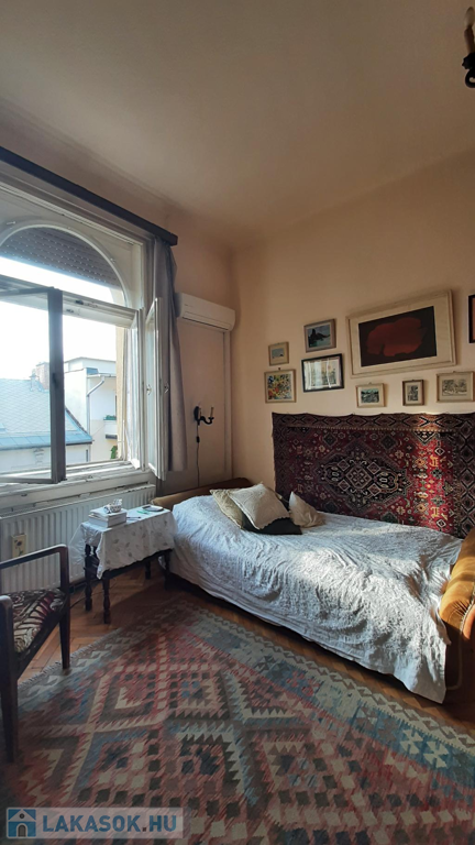 Budapest 13. kerületének Újlipótvárosi részén, Hollán Ernő utcában (Raoul W. u.-nál)eladó 100 nm, IV. emeleti napfényes, cirkó fűtéses ingatlan, melyből egy 18 nm rész le lett választva egy teljesen külön bejárati ajtóval, és önálló külön lakásként használható. Ez a front udvarra néz. A lakás másik fele utcai, ahol egy hatalmas étkezős konyha és két szép nagy szoba található. A nagyobbik lakásban a fürdőszobában kád és zuhanykabin is van, a kisebbikben pedig szintén zuhanykabin, és itt a w.c. kézmosóval külön helyiségben található. Ideális nagyobb családnak, vagy a kisebbik rész bérbeadásra is alkalmas. Egy helyrajzi számon van, tehermentes. Irányára: 148 M Ft. Tulajdonosa egy kisebb ingatlanba költözne, ami kb. 60-70 nm, és jó állapotú.