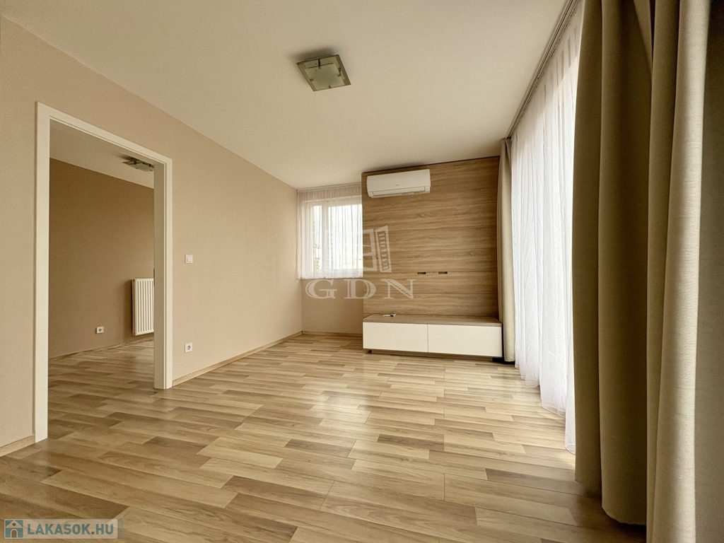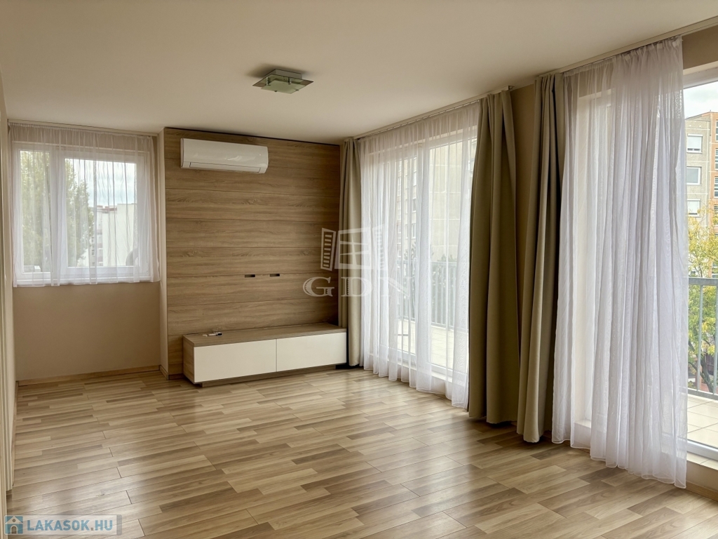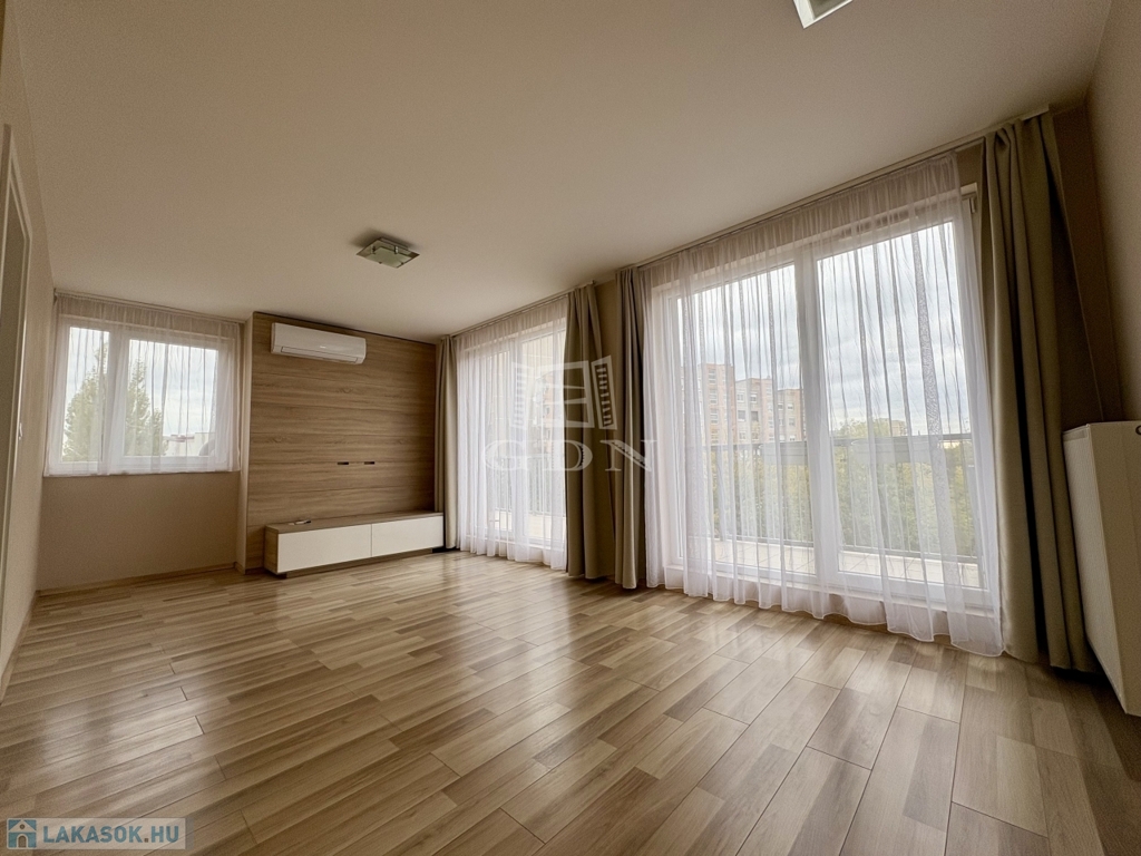 A jól átgondolt alaprajznak köszönhetően az amerikai konyhás nappali mellett három külön nyíló szoba, két fürdőszoba és praktikus tárolóterek szolgálják a kényelmet. A lakás előtt nincs magas beépítés, így a kilátás egy zöld, fás parkra nyílik, a helyiségek pedig egész nap napfényesek és csendesek.