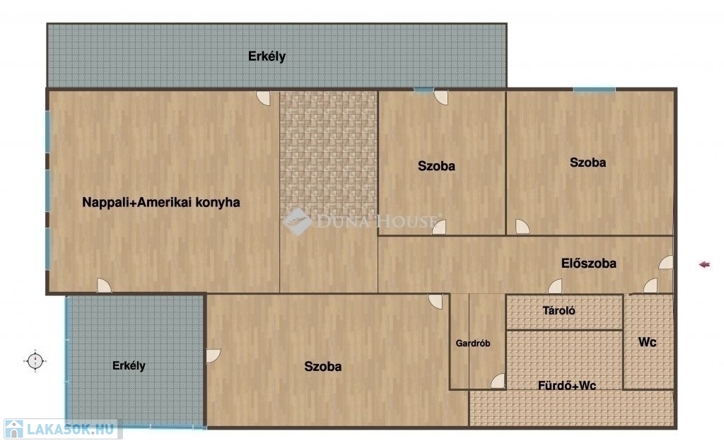 Eladó egy újszerű, 82 m²-es, nappali + 3 hálószobás saroklakás két külön szabadtéri tartózkodásra is alkalmas térrel egy 10 m²-es erkéllyel és egy 10 m²-es terasszal.