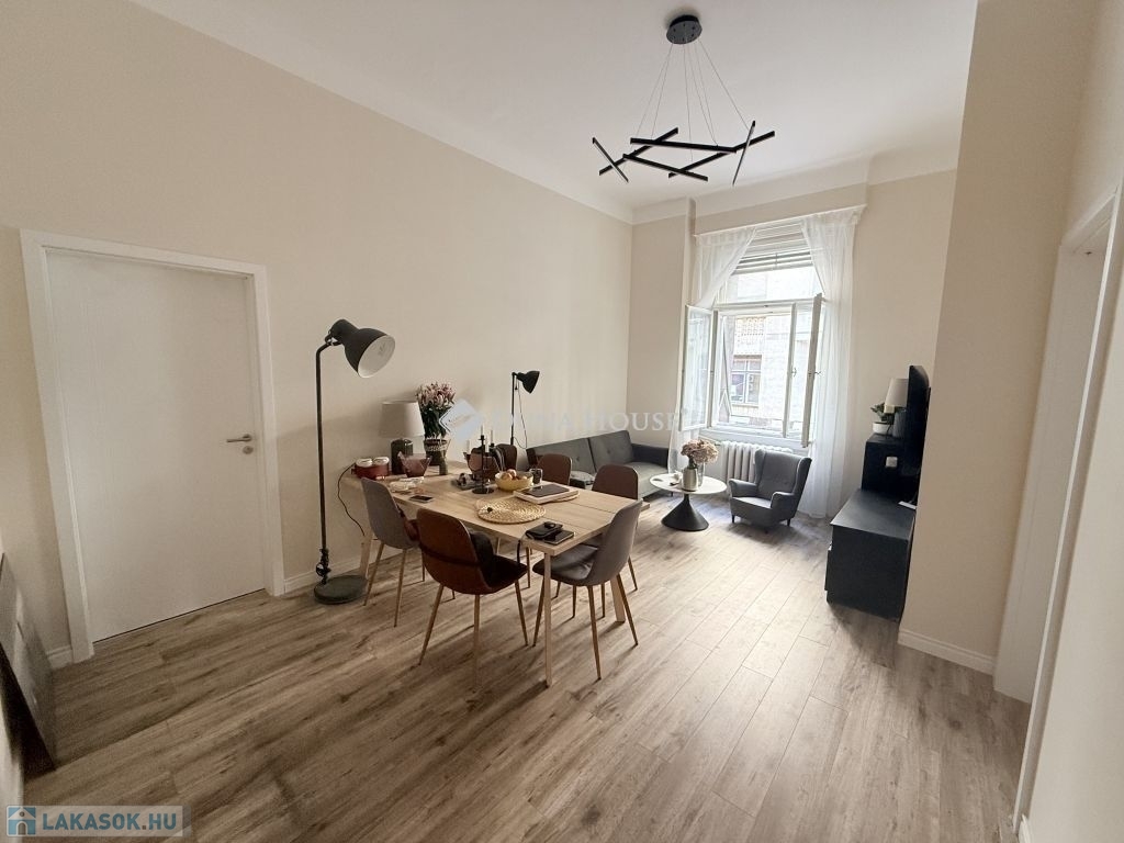 a 13. kerület szívében - Hegedűs Gyula utcában! Eladó egy 108 m2-es, 4+fél szobás, földszinti lakás a közkedvelt 13. kerületben, a Nyugati pályaudvar és a körút közvetlen közelében. Az ingatlan egy műemlékvédelem alatt álló, patinás épületben található, amely a régi polgári hangulatot ötvözi a modern komforttal. A lakás elosztása kiváló - a tágas, világos szobák és a praktikus fél szoba ideális választás nagyobb családoknak vagy akár irodai, rendelői hasznosításra is. A burkolatok cseréje megtörtént, a fa nyílászárók pedig jó állapotban vannak, megőrizve az épület klasszikus stílusát és eleganciáját. A környék infrastruktúrája elsőrangú: pár perc sétára a Nyugati pályaudvar, West End bevásárlóközpont, villamos-és metrómegállók, éttermek és kávézók. Ez az ingatlan tökéletes választás azoknak, akik a belvárosi életstílust keresik egy tágas, karakteres otthonban - akár befektetésre, akár saját célra. Várom hívását!