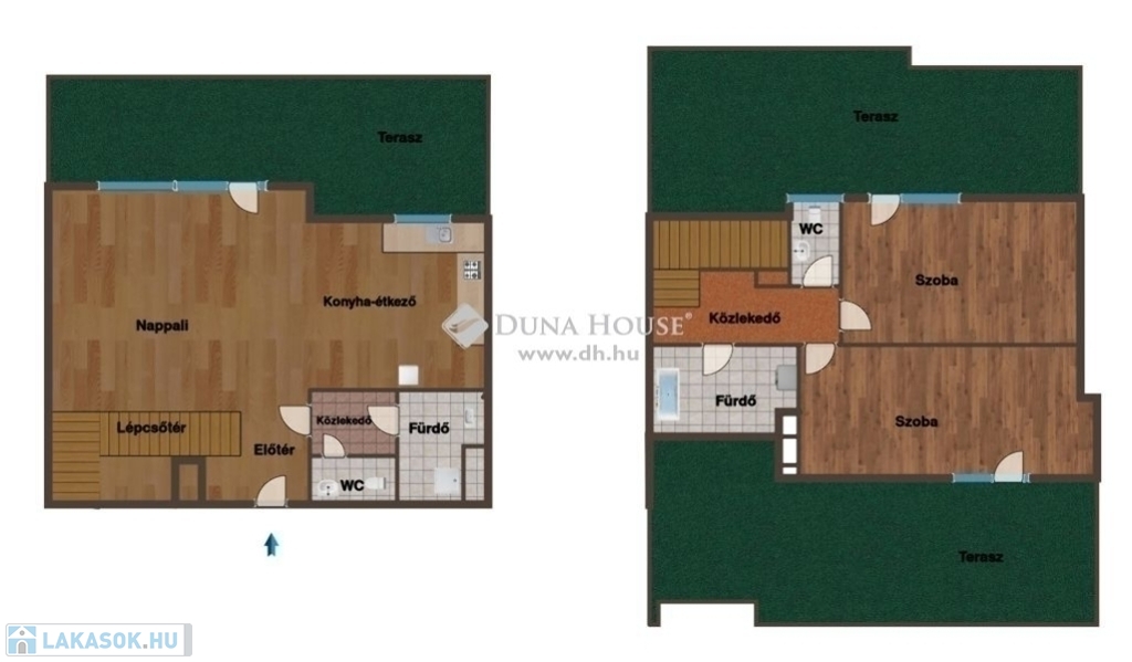 Az ingatlan két hálószobával, három, összesen 80 m2-es terasszal és két fürdőszobával rendelkezik, ideális választás azok számára, akik tágas, kényelmes otthont keresnek, ahol a lakás mindegyik szintje különleges élményt nyújt.