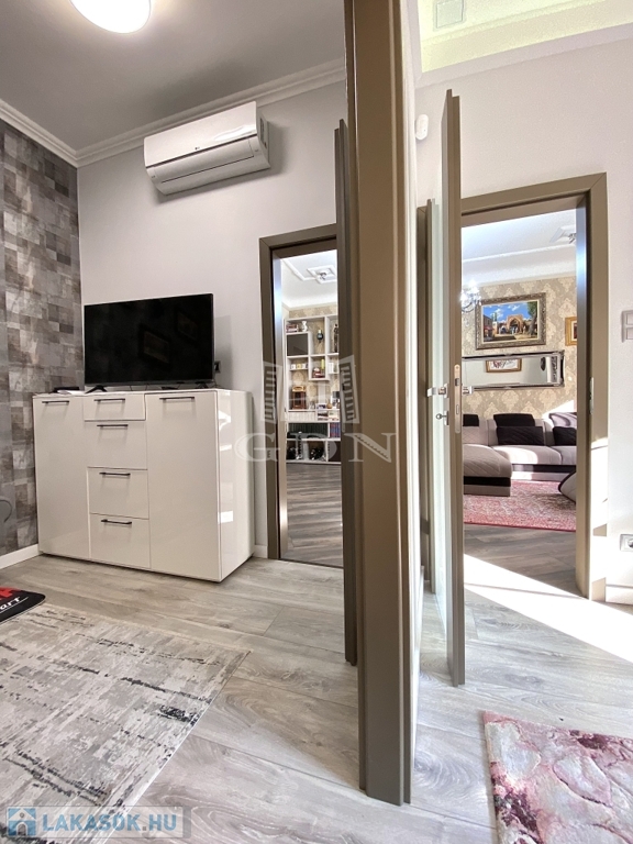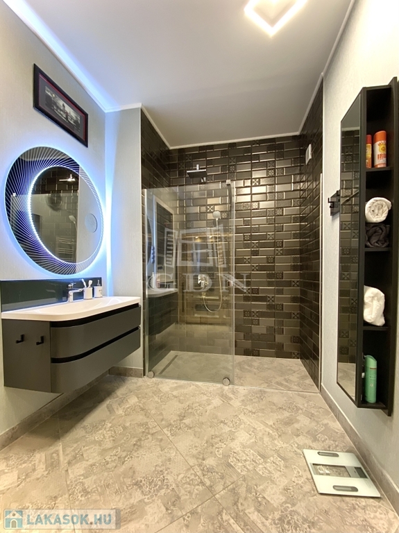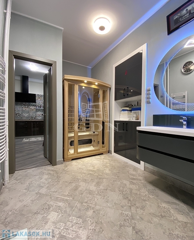 ✅ 80 m²-es utcafronti lakás – egyedüli bejárattal a lépcsőházból, erkéllyel, amerikai konyhás nappalival, két hálószobával, 9 m²-es luxus fürdővel (szauna és sétálós zuhany), két külön WC-vel és gardróbszobával. A prémium érzetet AEG gépekkel felszerelt egyedi konyha, klímaberendezés, elektromos redőnyök, rovarhálók és riasztórendszer biztosítja.
