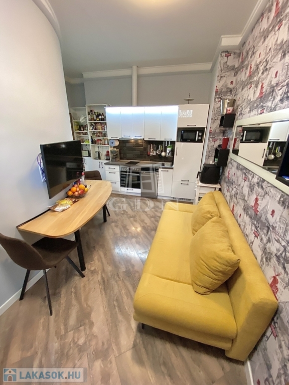 ✅ 27 m²-es stúdió lakás – külön bejárattal a körfolyosóról, amerikai konyhás nappalival, hálószobával, fürdőszobával és külön WC-vel.