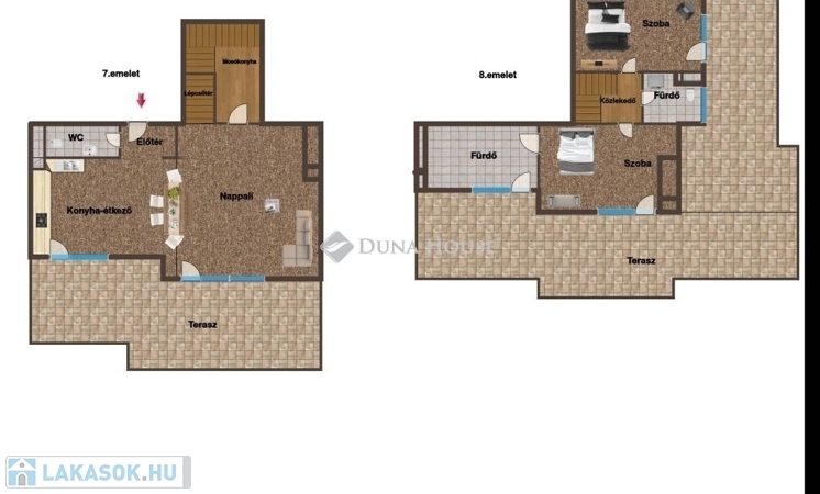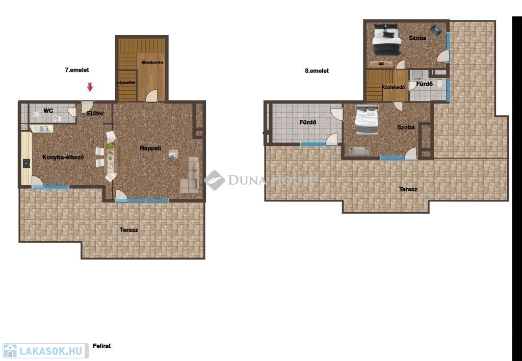 , modern, fiatalos lakások! Budapesten, a XIII. kerület Angyalföld városrészén, egy 2021-ban épült, modern, liftes lakóparkban eladó egy 95 nm-es, belső kétszintes lakás. Az ingatlan két hálószobával, két nagy terasszal, két fürdőszobával és egy külön WC-vel rendelkezik, Ideális választás azoknak, akik egy tágas és kényelmes otthont keresnek a város szívében. A lakás alsó szintjén egy tágas nappali és amerikai konyhás étkező található, melyek közvetlen kapcsolatban állnak a hatalmas terasszal, így a lakás világos és napfényes. Az emeleten két hálószoba és két fürdőszoba és közel 70 m2-es terasz biztosítja a maximális kényelmet. A környék kiváló tömegközlekedési lehetőségekkel rendelkezik! A 14-es villamos, helyi autóbusz járatok, illetve akár az M3 metró megállója is csupán perc sétára található, így a belváros is könnyen megközelíthető. A lakáshoz teremgarázsban parkolóhely vásárolható vagy bérelhető. Találja meg nálunk leendő otthonát, aktuális befektetését!