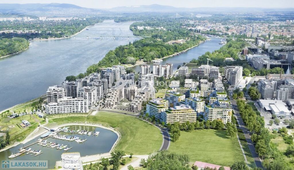 Eladó a 13. kerületben a Marina Parton, a most épülő Duna Terasz Grande-ban egy 87m2+ 113m2-es, 3. emeleti, 4 szobás, NY-i tájolású lakás. Az ingatlan Dunai Panorámás, illetve rendelkezik egy hatalmas terasszal és saját kertel.Okos-otthon megoldások, és mennyezet hűtés-fűtés gondoskodik a gazdaságos üzemeltetésről.A társasházban: Recepció szintű portaszolgálat, és csomagpont található.A közösségi életről pedig a közösségi tetőteraszok (jóga + napozó és grillterasz) a játszóterek és a lakók számára használható sporteszközök gondoskodnak.A környék:A Duna Terasz Grande olyan lenyűgöző adottságokkal rendelkező helyszínre épül, amelyből városszerte kevés létezik. A XIII. kerületi Vizafogó városrész állandóan fejlődő, megújuló, új-építésű házakkal övezett lakóövezete egyedi életmódot biztosít a lakóinak.Képzeld el, hogy a nap végén a lenyűgöző Duna-parton ülve nézed naplementét! A helyszín garantálja, hogy mindennapjaid része lesz a folyó, a sétány és a kikötő.Pár lépésre a Duna part, de számtalan szórakozási és sportolási lehetőséget talál ebben az exkluzív környezetben: Marina sétányon játszóterek, kültéri edzőterem, teniszpálya igényes éttermek, kávézók, élelmiszerbolt, jacht kikötők, kondi termek, medencék, futó pálya.Frekventáltságát tekintve 5 percre a 3-as metró, buszok, kerékpárút szinte a ház előtt, a kikötő kb. 100 méter, így akár autóval, biciklivel, metróval vagy akár hajóval is elérheti a belvárost.Befektetés:A Duna-parti lakások igen kedveltek a befektetők körében, nem ok nélkül. A korlátozottan rendelkezésre álló, Duna menti telkeken épült ingatlanok azon felül, hogy értékállóak minden évben jelentősen növekszik az értékük, illetve gyorsan és egyszerűen bérbe lehet adni, így akár kiemelkedő hozamot biztosítanak tulajdonosaiknak.Ha Ön családjával egy nyugodt, biztonságos, tiszta levegőjű, kényelmes otthont keres, vagy akár egy jó befektetést .