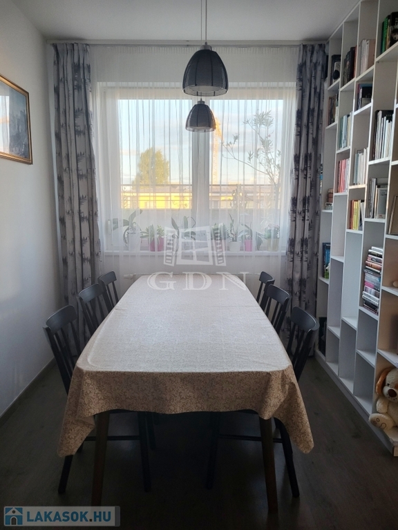 A 92 m²-es, kiváló elosztású alapterület (étkezős nappali + 3 szoba, külön konyha, 2 fürdőszoba).